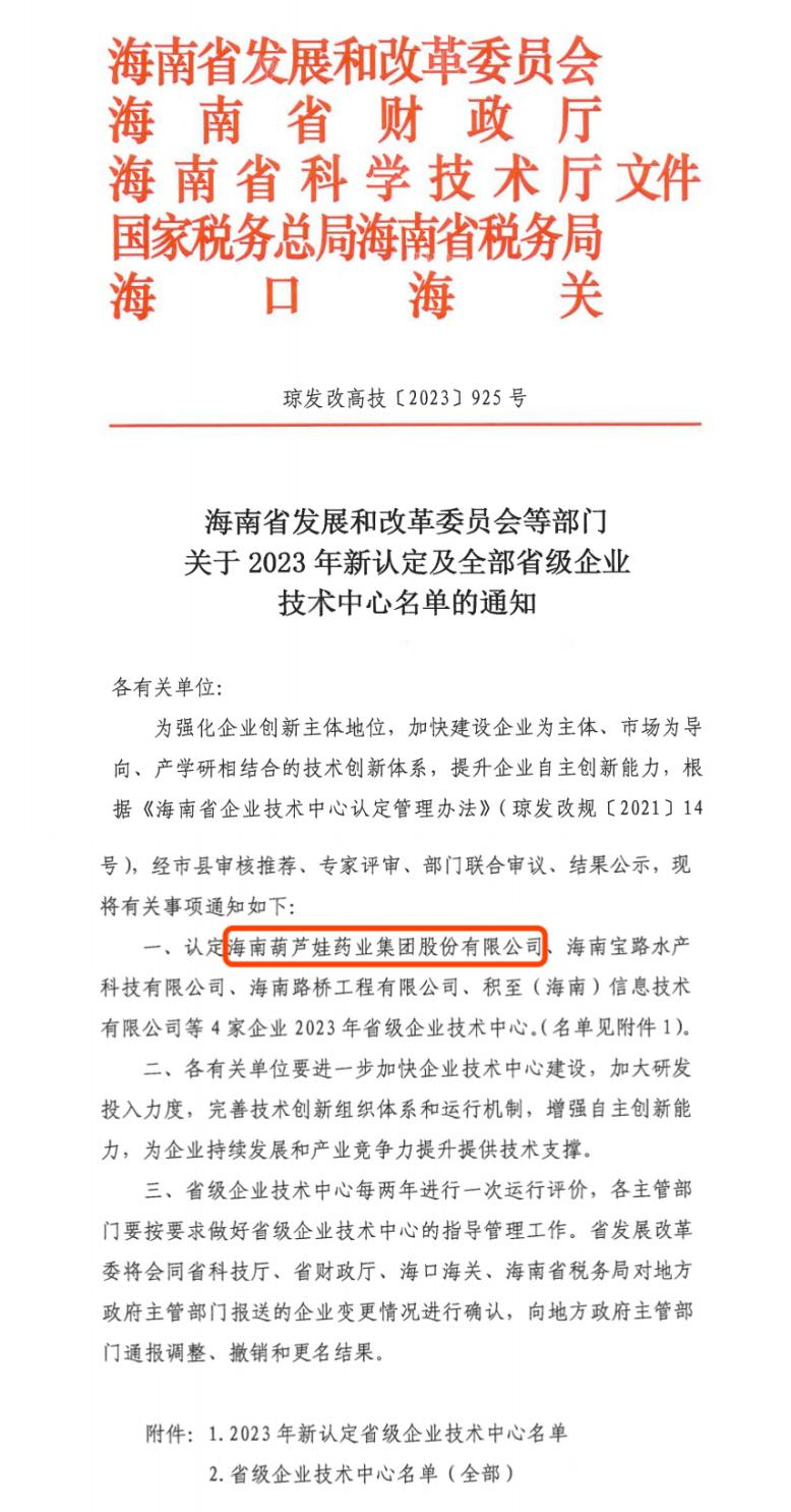 近日,海南省发改委等多部门联合公布了《关于2023年新认定及全部省级企业技术中心名单的通知》,其中,海南德扑之星药业集团股份有限公司成功通过评审,被认定为省级企业技术中心,是本次获批的4家企业之一。